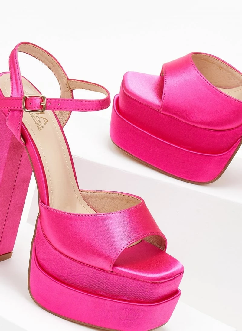 The Fashion Project Πέδιλα Platform σατέν με μπαρέτα – Φούξια