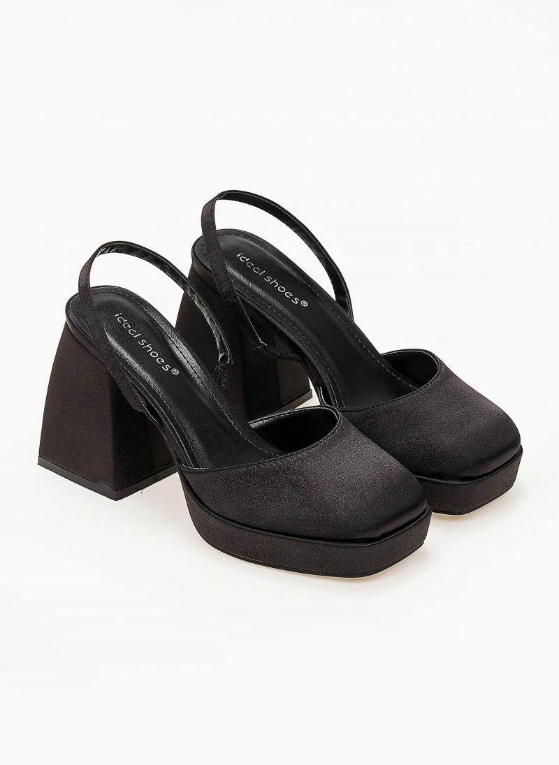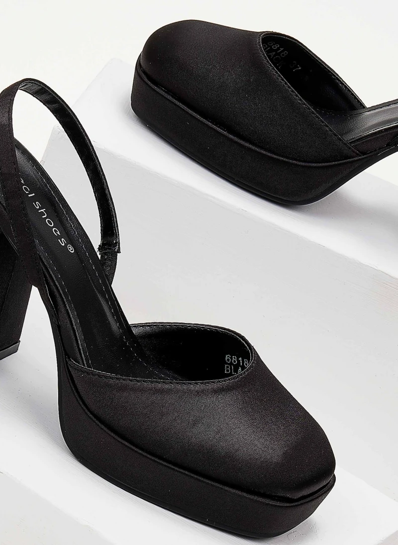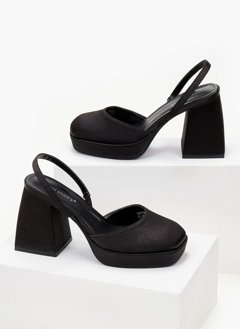 The Fashion Project Πέδιλα σατέν με χοντρό τακούνι – Μαύρο