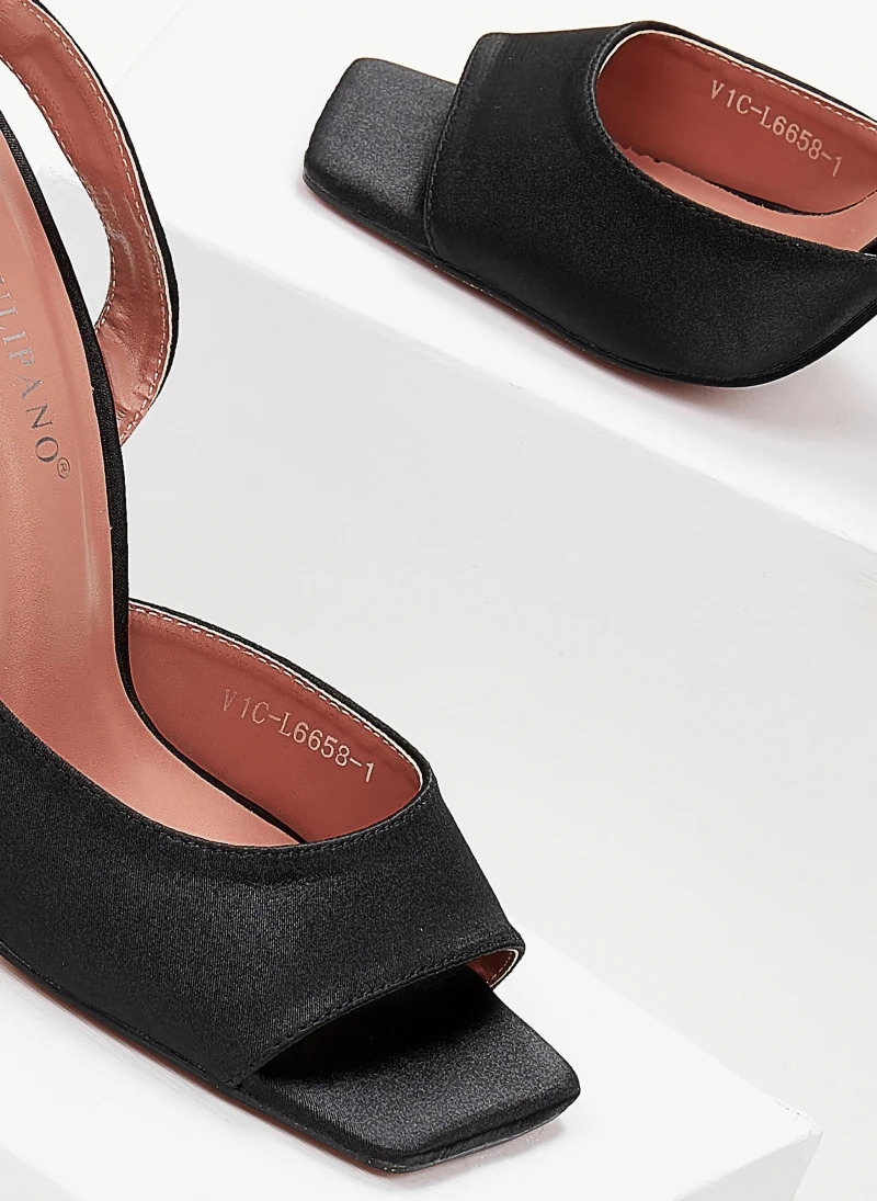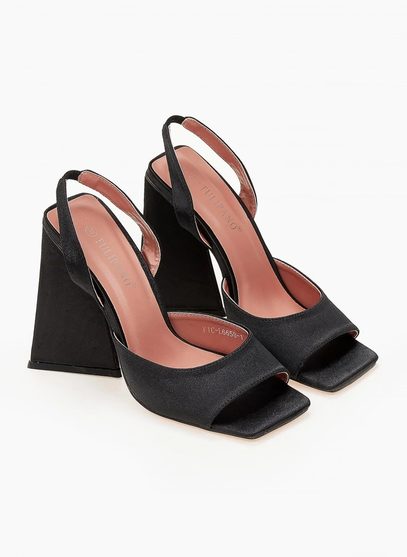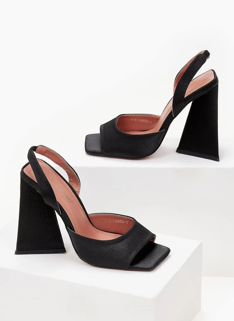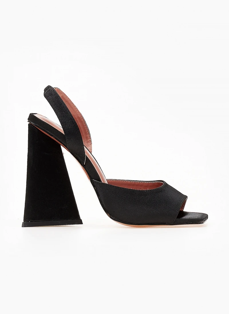 The Fashion Project Πέδιλα σατέν με τρίγωνο τακούνι – Μαύρο